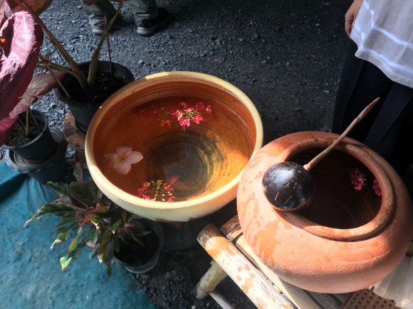 Tại cửa ra vào sẽ có một khu vực được bày biện xinh đẹp với hoa và chậu rửa. Khi đến bàn rửa tay, sẽ có một người đứng ở phía sau bàn và làm củ chỉ chắp tay chào với bạn. Hành động đó trong tiếng Thái gọi là “wai” (ไหว้) – một cử chỉ truyền thống thể hiện sự chào hỏi, tôn trọng, biết ơn và xin lỗi, bao gồm việc chắp hai lòng bàn tay vào nhau như đang cầu nguyện và hơi cúi đầu.