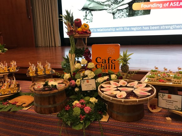 Cũng rất may mắn khi chuyến đi này mình được tham gia Lễ kỉ niệm 50 năm quan hệ ngoại giao ASEAN – Nhật Bản được tổ chức tại Bộ Ngoại giao Thái Lan. Chùng mình đã được tham dự một bữa tiệc đứng ngoại giao cực kỳ sang trọng. Nói đúng hơn là một buổi networking siêu đỉnh khiến mình bị choáng ngợp không biết phải bắt chuyện cùng ai huhu. Giờ nghĩ lại, nếu là mình của ngay lúc nào quay trở lại thời điểm đó, mình sẽ chạy đi chụp ảnh với càng nhiều người càng tốt ạ hihi ^^