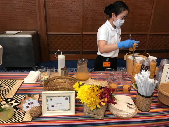 Các bữa tea break được chuẩn bị vào giữa giờ với đủ những món ăn đa dạng và mang đậm bản sắc văn hoá của Thái Lan. Một trong những món ăn mà mình ấn tượng nhất chính là “Chor muang” – một món bánh bao hấp ăn cùng nước cốt dừa, được tạo hình thành những bông hoa vô cùng xinh đẹp, mỹ miều.